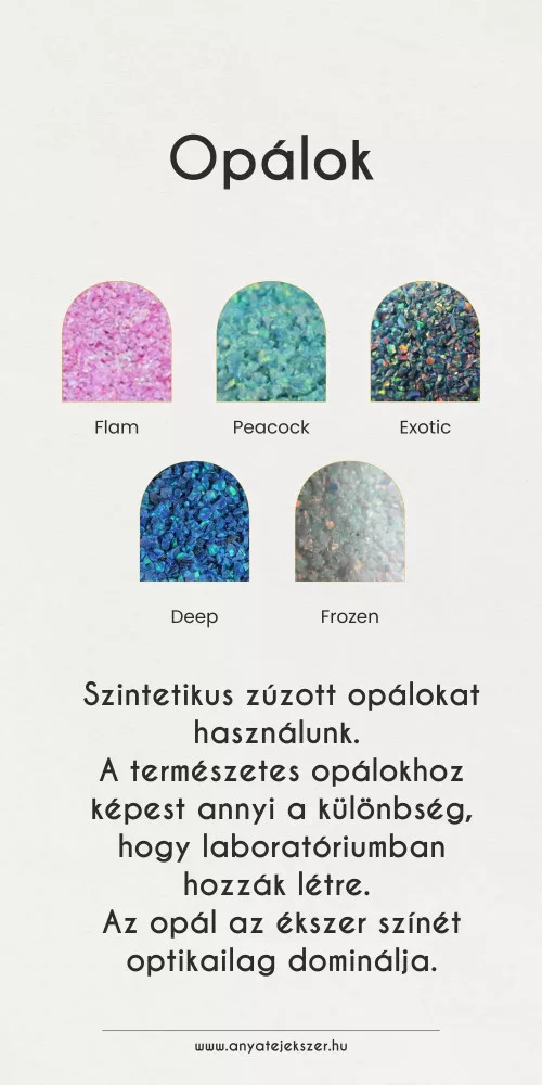 Kis stúdiónkban minden ékszer kiemelt figyelmet kap, ezért egyszerre egy ékszeren dolgozunk, havonta maximum 14 darabot készítünk el.